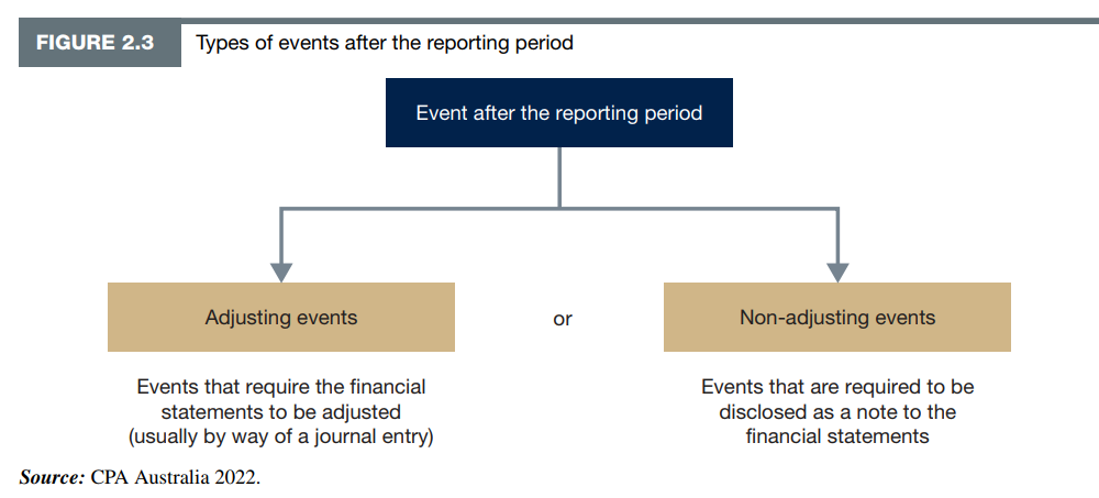 2.4 explain and discuss the required treatment for both adjusting and non-adjusting events occurring after the reporting period in accordance with IAS 10